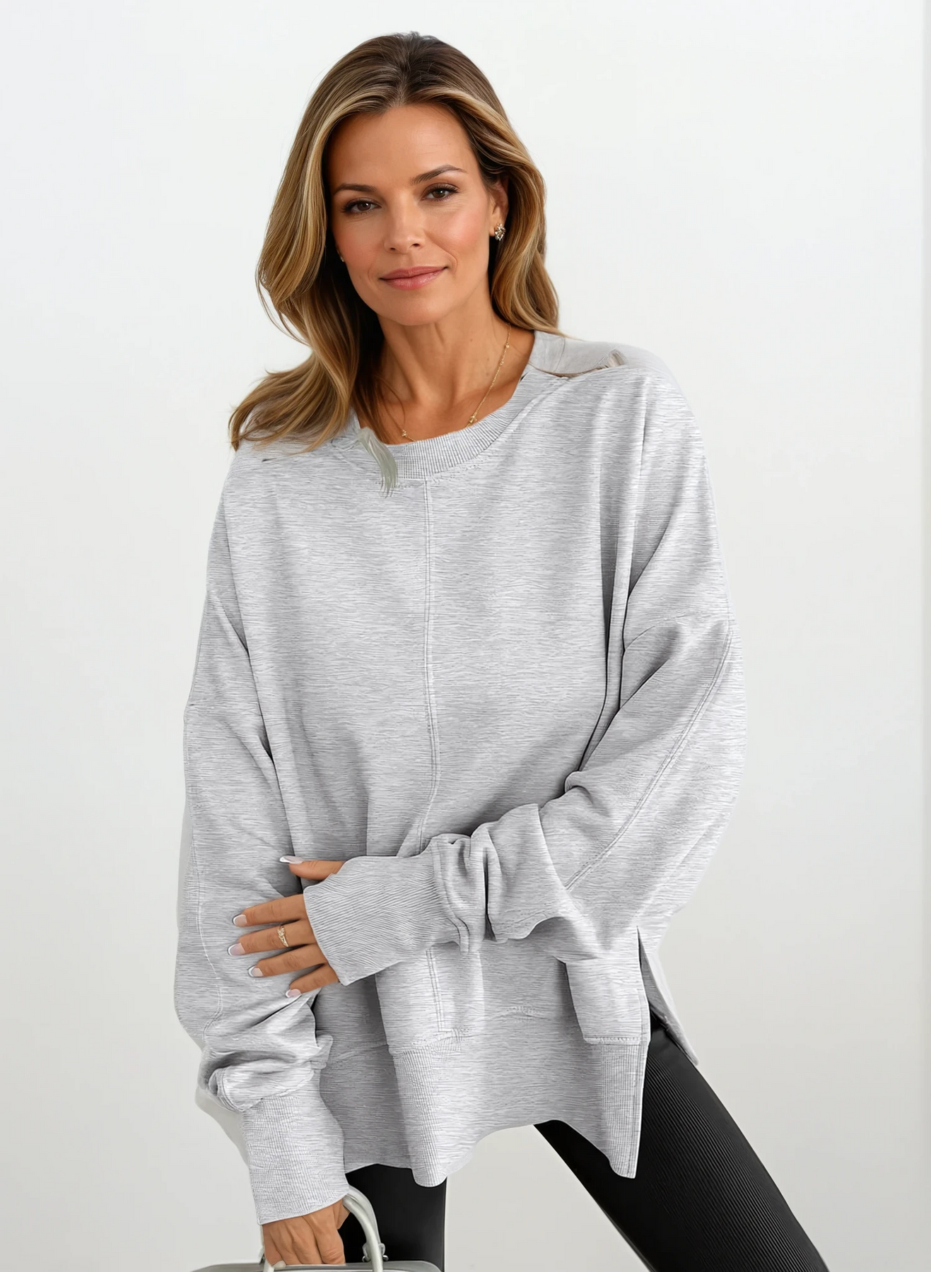 Discover the perfect balance of coziness and style. The Comfy Oversized Long Sleeve Sweatshirt offers a relaxed fit that flows naturally with your movement while maintaining a clean contemporary silhouette. Made from a soft cotton poly blend, it is your go to piece for laid back days or polished casual looks.